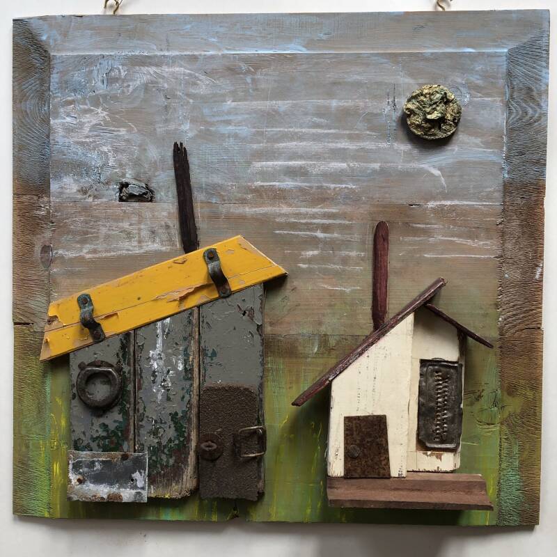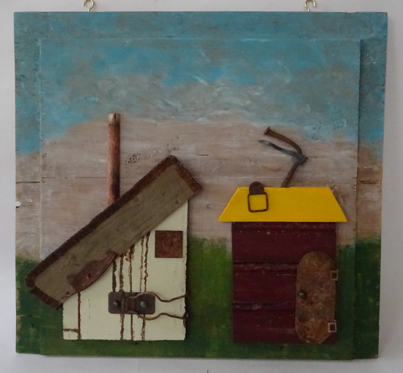 Gebruikte materialen: houten panelen, verf, ijzer.
