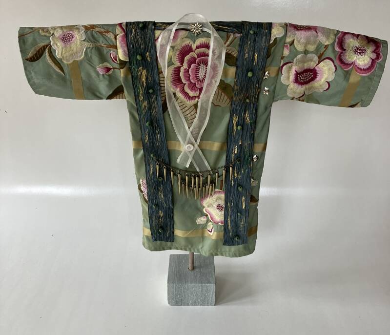 Gebruikte materialen: Stof, papier, zijde, hout, ornamenten