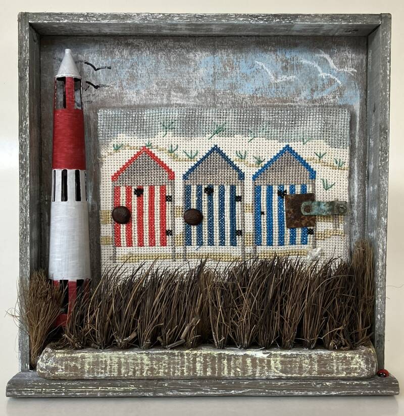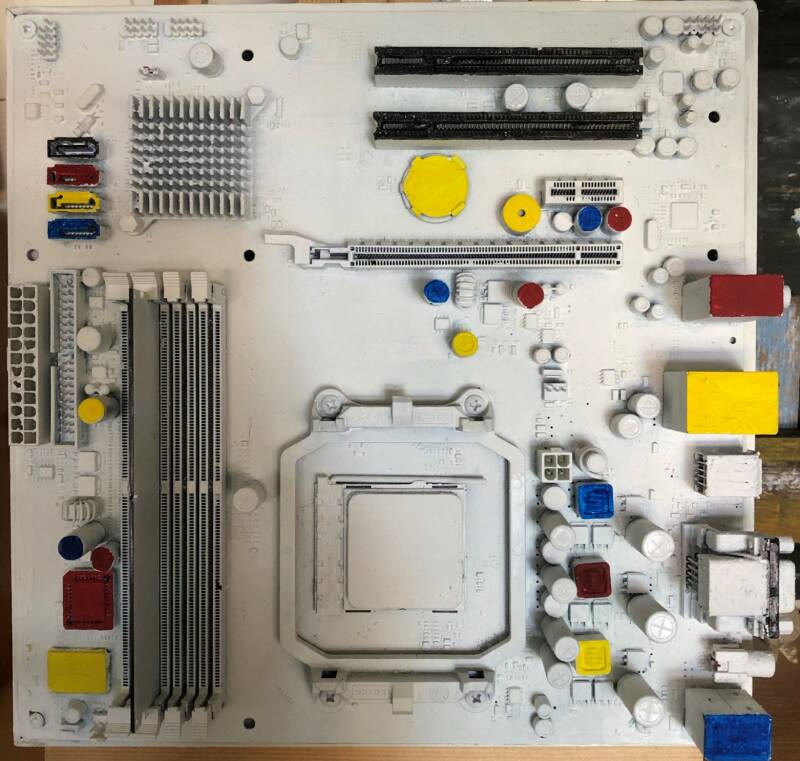 Gebruikte materialen: Beschilderde printplaatje, op kistje.